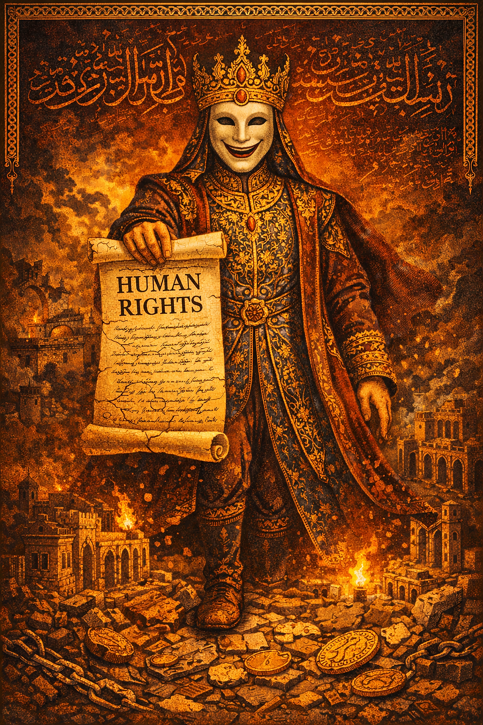 Direitos humanos, aqui, não aparecem como compromisso universal, mas como linguagem instrumental. A narrativa moral apaga o mecanismo material que produziu a inflação, a escassez e a instabilidade, deslocando o foco da coerção econômica para a conduta do Estado sitiado. O sofrimento social, deliberadamente fabricado, é então mobilizado como pretexto de tutela — a violência estrutural some do quadro, e a intervenção reaparece como “responsabilidade”.
